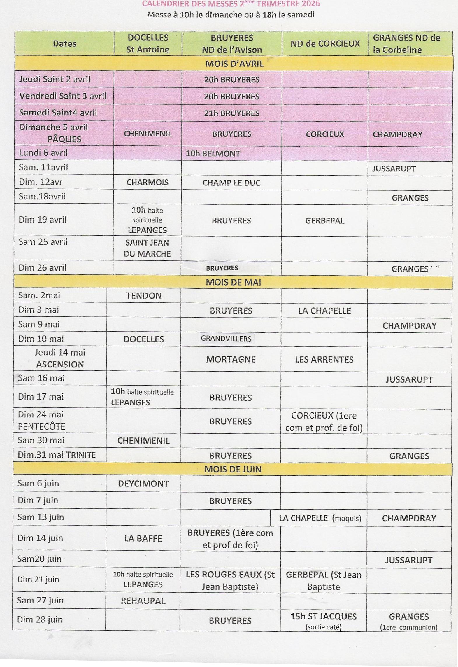 | Dimanche 26 avril - 10:00 | Eglise Notre-Dame-de-l'Assomption de Bruyères | |